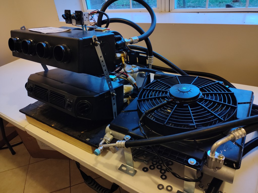 TURN KEY offers three different options, round vent evaporator (cooling only), square vent evaporator (cooling only), and square vent evaporator (cooling and heating). The square vent evaporator with cooling and heating is an upgrade system. The system uses engine coolant to heat the air vent core. All evaporators (cooling or cooling & heating) outside dimensions (LxHxW) are the same.